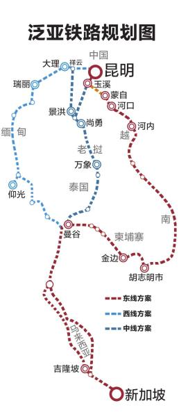 王夢�。哼@條鐵路是泛亞鐵路的一部分,之前泛亞鐵路是希望從大理出發(fā)到緬甸,但是遇到了一些難題,這次泰國批準(zhǔn)了這個(gè)項(xiàng)目,我們把線路也做了調(diào)整,改從昆明出發(fā),經(jīng)過老撾、泰國、馬來西亞,最后到新加坡。